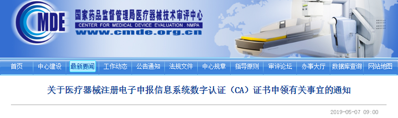 关于调整医疗器械注册电子申报信息化系统数字认证(CA)证书业务办理方式的通告(2020年第12号)